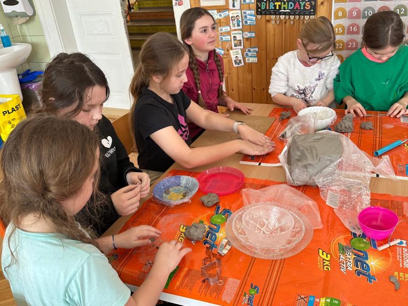 Druháci a páťáci z naší školy spojili své síly a pustili se do společného tvoření jarních dekorací z keramické hlíny.