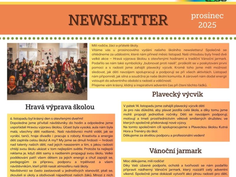 Milí rodiče, žáci a přátelé školy, Vítáme vás u prosincového vydání našeho školního newsletteru!