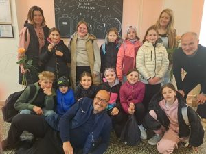Po příjezdu si žáci prohlédli celou školu 👀. Velký úspěch měla návštěva učebny fyziky, kde si mohli vyzkoušet zajímavé pokusy s vodou 💧🧪, které připomínaly téměř kouzla ✨ Následovala svačinová přestávka v nově zařízené kuchyňce 🍽️, kde je čekalo milé překvapení – pan ředitel jim osobně připravil výborné palačinky 🥞😋 „Tak tohle jsem nečekal, že nám pan ředitel bude dělat svačinu,“ zaznělo nadšeně mezi žáky 😄.